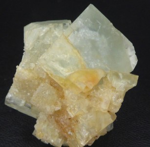 FLUORITE / Mine Xianghualing, Linwu Co, préfecture de Chenzhou, Hunan, Chine /Bon échantillon de fluorite verte transparente à translucide dont les plus grands cristaux mesurent 3,2 cm. Certaines arêtes sont érodées.