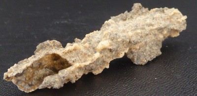 FULGURITE / Smara, région El Hamra, Maroc / Cette fulgurite est de la silice naturel amorphe. Elle se forme suite à un impact de foudre sur un sol sableux. La puissance de la foudre est estimée à un milliard de Joules et provoque la fonte des matériaux siliceux, ce qui donne un tube creux.