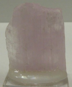 KUNZITE (variété de spodumène) / Laghman, province du Nuristan, Afghanistan / Magnifique monocristal de kunzite transparent à translucide bien rose-violine. Les faces sont striées et brillantes et montre une bonne terminaison typique pour ce minéral. Livrée sur son socle.