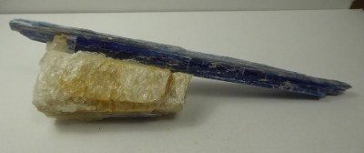 KYANITE / District de Barra do Salinas, Coronel Murta, Minas Gerais, Brésil / Superbe cristal lamellaire de kyanite d'une belle couleur bleue posée sur du quartz massif. Pièce très esthétique.