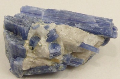 KYANITE / District de Barra do Salina, Coronel Murta, Minas Gerais, Brésil / Belle pièce composée de cristaux lamellaires de kyanite de couleur bleutée incluse dans du quartz massif transparent.